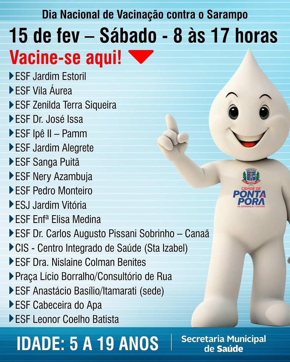 Pais, mães ou responsáveis, procure a Unidade de saúde mais próxima e levem seus filhos a partir dos 5 a 19 anos de idade A prefeitura de