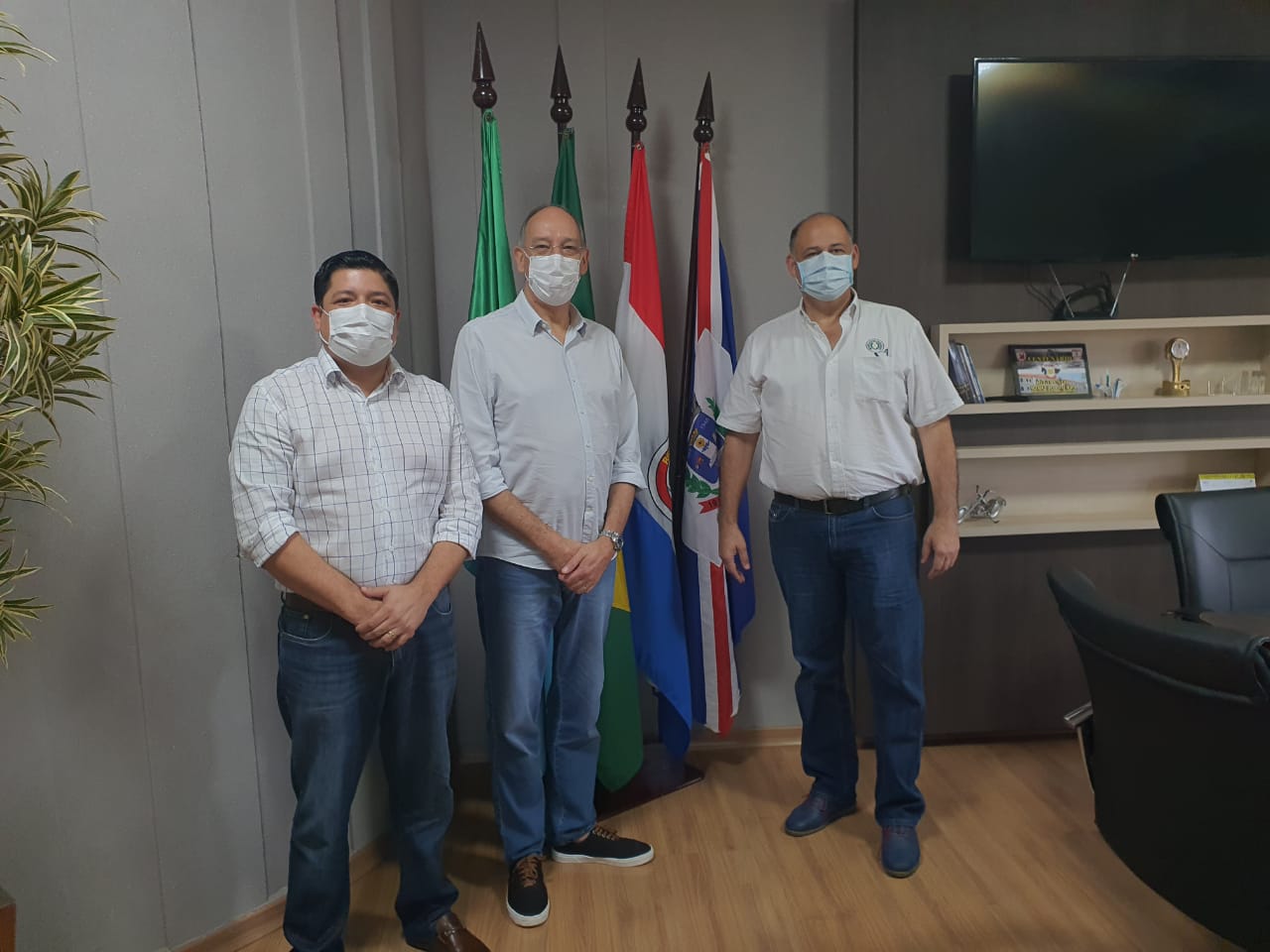 O Prefeito Hélio Peluffo Filho, acompanhado do Secretário Municipal de Desenvolvimento Sustentável, Indústria, Comércio e Turismo, Caio Augusto recebeu em seu gabinete o Senador paraguaio