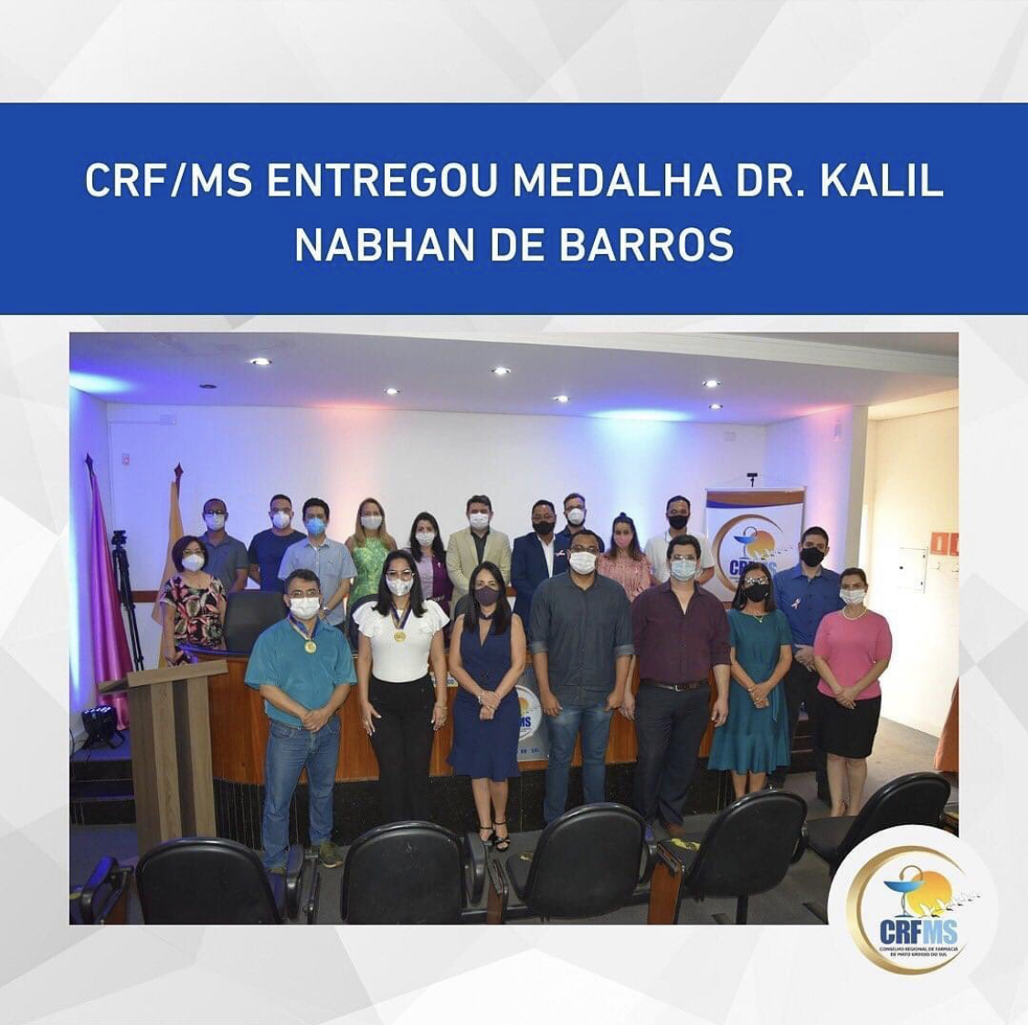O CRF/MS entregou, nesta sexta-feira (8), a Medalha do Mérito Farmacêutico Dr. Kalil Nabhan de Barros. A medalha também é uma homenagem prestada pelo CRF/MS