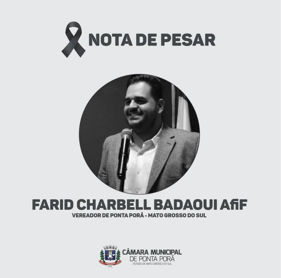 E com imenso pesar que esta Casa de Leis comunica a morte do Vereador Farid Afif, ocorrido nesta data, 08 de outubro. Neste momento de