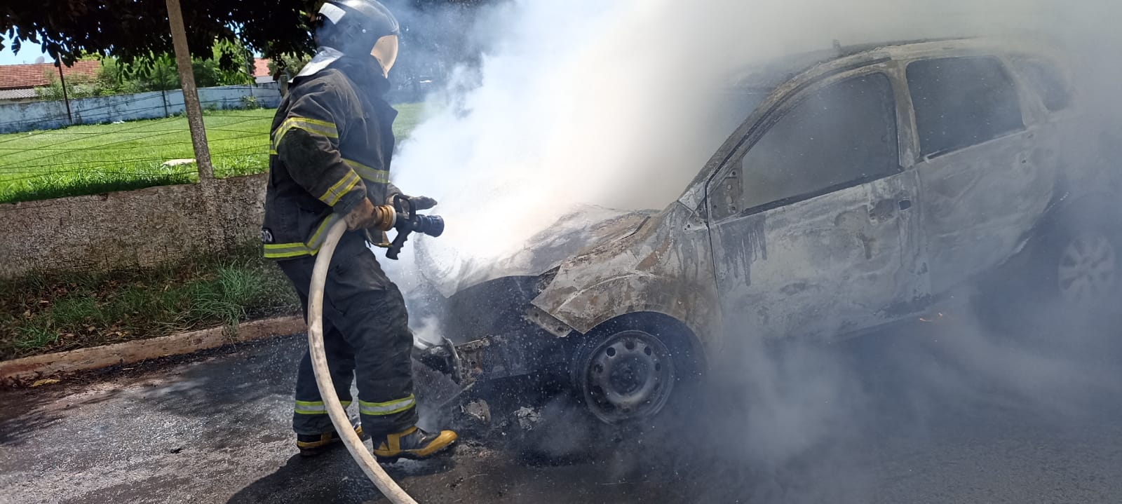 Por volta das 10 horas da manhã desta sexta-feira (11/12/2022) o Corpo de Bombeiros Militar em Ponta Porä, combateu um incêndio em veículo Ford Fiesta
