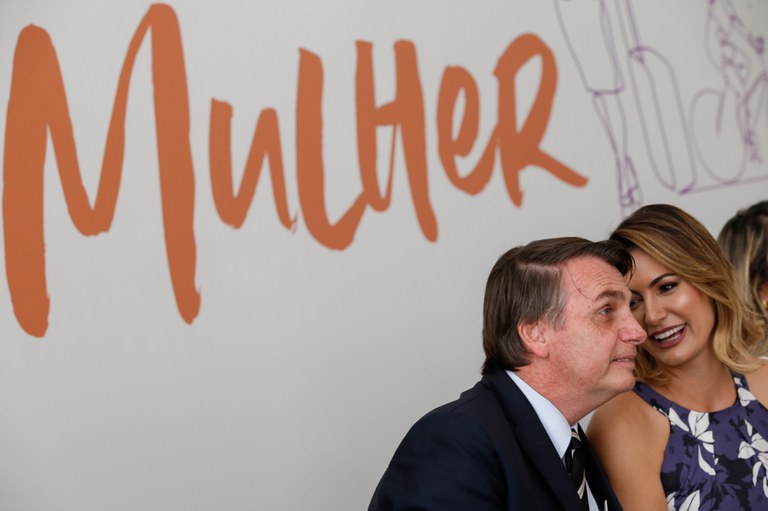 Acompanhado da Primeira-dama, Michelle Bolsonaro, o Presidente da República, Jair Messias Bolsonaro, lança iniciativas para fortalecer o protagonismo da mulher O presidente Jair Bolsonaro e