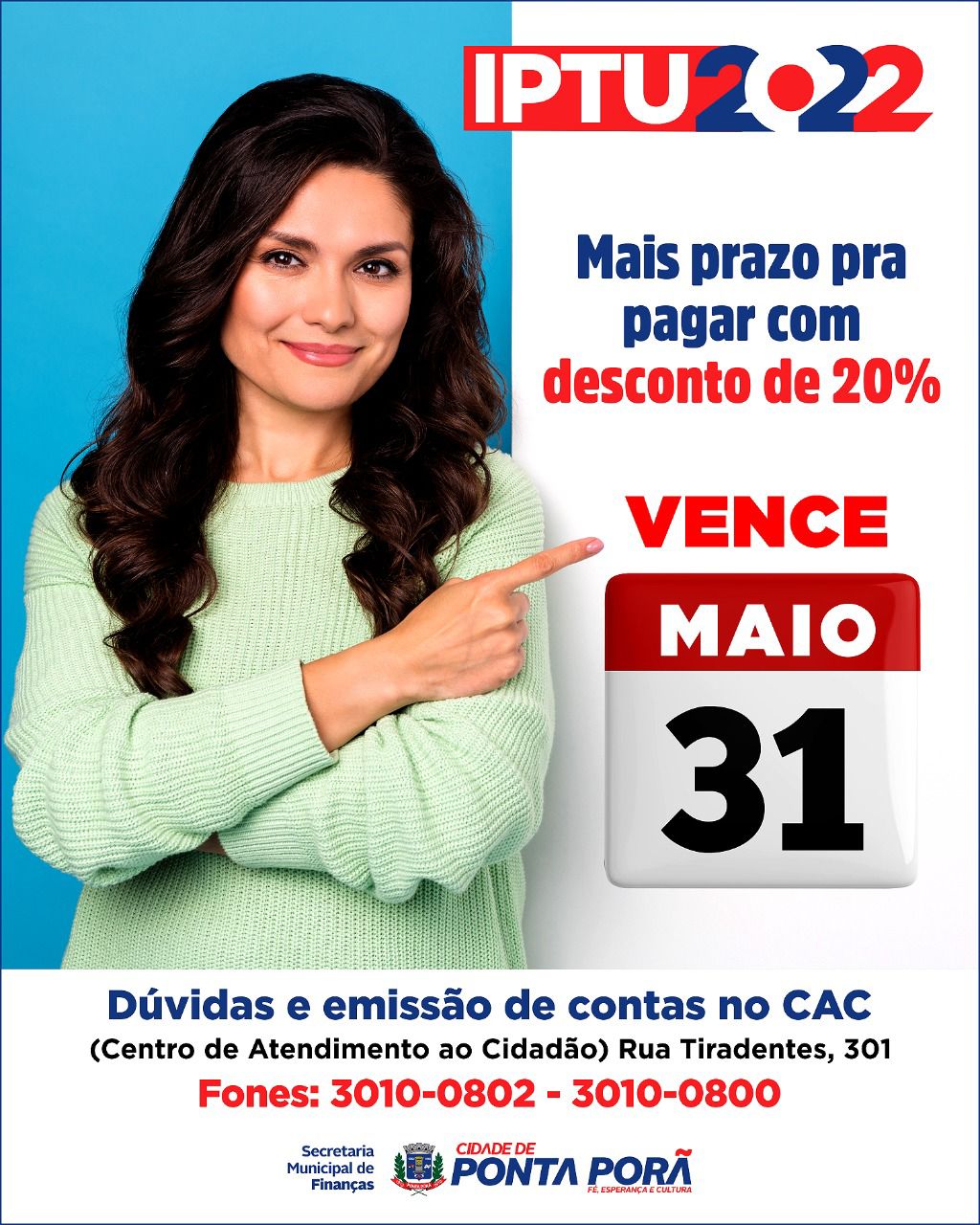 A Prefeitura Municipal de Ponta Porã prorrogou o vencimento do Imposto Predial Territorial Urbano para o dia 31 deste mês. As demais parcelas ficaram com