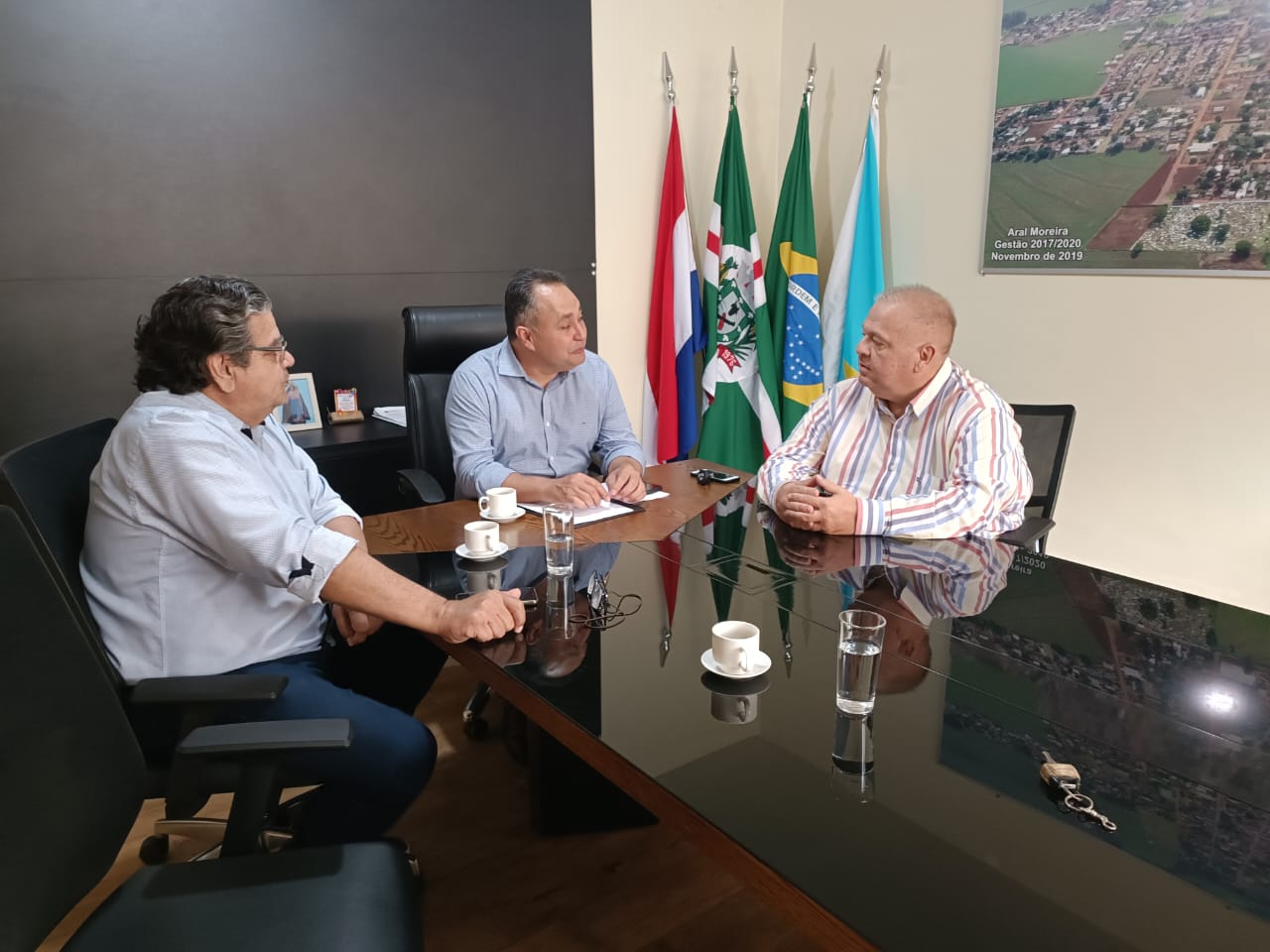 Hoje estiveram reunidos com o Prefeito de Aral Moreira Alexandrino Garcia, a Secretaria de Assistência Social do município, e o coordenador da Casa do Trabalhador