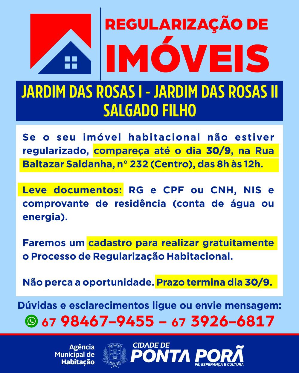 Os moradores do Jardim das Rosas I, Jardim das Rosas II e Salgado Filho têm até a próxima sexta-feira, para solicitar junto á Secretaria Municipal