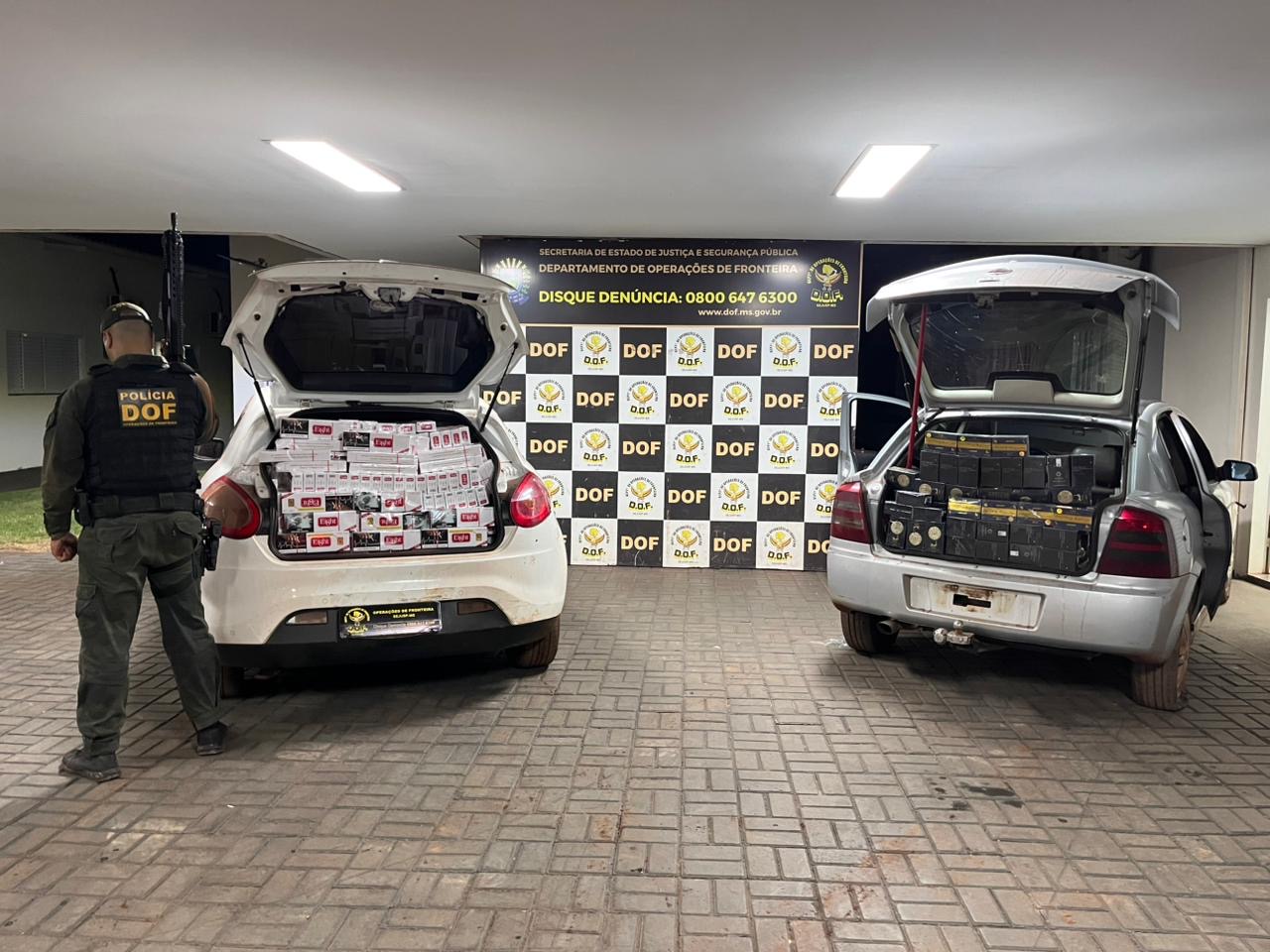 Policiais militares do DOF (Departamento de Operações de Fronteira) apreenderam neste sábado (11), em Rio Brilhante, dois carros carregados com 2 mil pacotes de cigarros