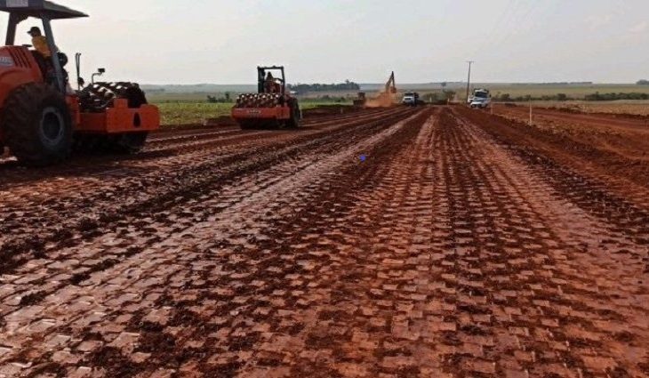 Nova estrada corta um maciço de carandás na planície, reduzindo distâncias e garantindo acesso permanente Integrando o pacote de obras de infraestrutura em execução pelo