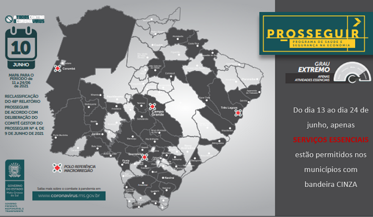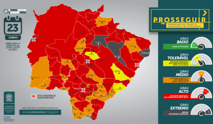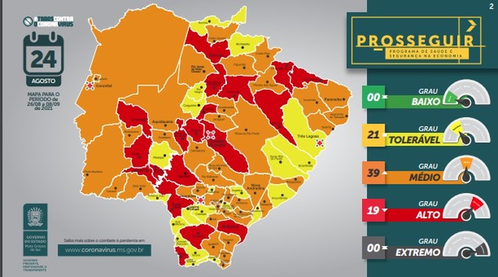 Com hospitais superlotados em todas as macrorregiões, comitê gestor do programa subiu classificação dos municípios um patamar Por G1 MS Novo mapa de classificação de
