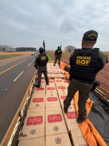 Policiais militares do DOF (Departamento de Operações de Fronteira) apreenderam, nesta quinta-feira (2), um caminhão Mercedes Benz, tipo Truck Graneleiro, carregado de cigarros contrabandeados do Paraguai. A apreensão ocorreu na BR-487, em Itaquiraí. Na ação, ninguém foi preso.