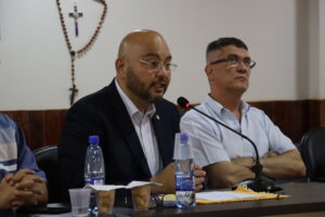 Durante a audiência pública, o deputado nacional Santiago Benitez agradeceu a oportunidade de estar presente em um evento que discute o desenvolvimento da fronteira. Ressaltou a importância do Parlim e disse que se trata de um empreendimento muito importante para a economia e que as duas cidades gêmeas devem fortalecer ainda mais a integração com a concretização de um projeto visionário. “O objetivo principal é trabalhar de forma conjunta, vamos buscar apoio da presidência do Paraguai, quero abrir portas em Assunção para fortalecer esse projeto. Com um aeroporto binacional além do transporte de passageiros teremos o transporte de cargas e as mercadorias chegarão muito mais baratas. A internet globalizou os mercados, mas se o produto não tiver como chegar ou o transporte for muito difícil acaba custando muito caro, precisamos simplificar para entrar no mundo comercial”, destacou.