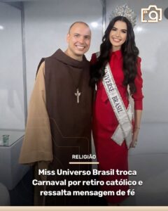 CAMPINA GRANDE – Em um mundo onde o brilho das lantejoulas e o som dos tamborins costumam ditar o ritmo de fevereiro, a Miss Universo Brasil 2025, Maria Gabriela Lacerda, decidiu seguir uma melodia diferente. Após conquistar o mundo com um traje em homenagem a Nossa Senhora Aparecida, a jovem de 22 anos surpreendeu o público e a mídia ao dizer “não” às passarelas do samba para se dedicar ao silêncio e à oração.