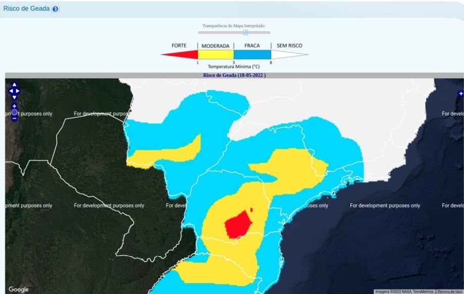 “A queda acentuada das temperaturas no estado é resultado do avanço da massa de ar frio associada a um sistema de alta pressão atmosférica”, explica.