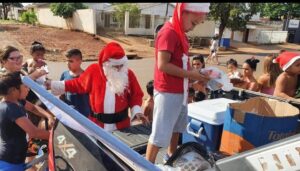 Mais uma ação de Natal inesquecível vai acontecer em Ponta Porã na tarde de domingo, 25 de dezembro, beneficiando as crianças da Grande Vila Áurea, pontualmente às 14h como faz ha quase 03 décadas, Marcelino Nunes de Oliveira acompanhado de seus amigos fará a distribuição de presentes, doces, pirulitos e guloseimas.