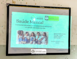 A Prefeitura de Antônio João, por meio da Secretaria Municipal de Saúde, está promovendo palestras sobre saúde mental em escolas do município. Ainda hoje, o tema “Saúde Mental” é rodeado de tabus e preconceitos devido às raízes históricas e culturais que as doenças mentais trazem consigo. Porém, falar sobre saúde mental vai muito além de falar sobre doença, é principalmente falar sobre autoconhecimento e autocuidado que passa pelos aspectos físicos e emocionais.