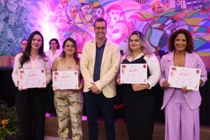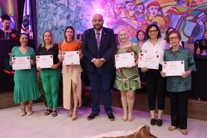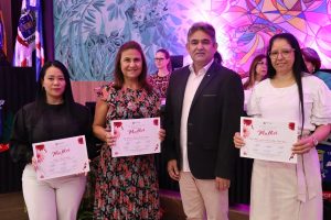 Logo depois seguindo ordem alfabética, os vereadores Agnaldo Miudinho, Anny Espínola, Candinho Gabínio, Edevaldo Mattoso Barbosa, Edinho Quintana, Jelson Bernabé, José Menino Júnior, Kamila Alvarenga, Kleber Ortiz, Marcelino Nunes, Neli Abdulahad, Lourdes Monteiro, Thiago Vedana, Vanderlei Avelino e Waldecir Fernandes, convidaram as homenageadas para local de destaque no plenário, onde foram agraciadas com o título “Mulher Internacional 2024”, concedido pela Câmara Municipal de Ponta Porã.