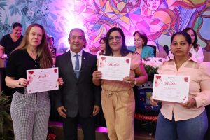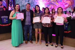 As vereadoras Anny Espínola, Kamila Alvarenga, Lourdes Monteiro e Neli Abdulahad foram homenageadas pelos demais vereadores no final da sessão, juntamente com a servidora Helena Edirlei Vider Atanázio, que recebeu a homenagem em nome de todas as servidoras do poder legislativo municipal.